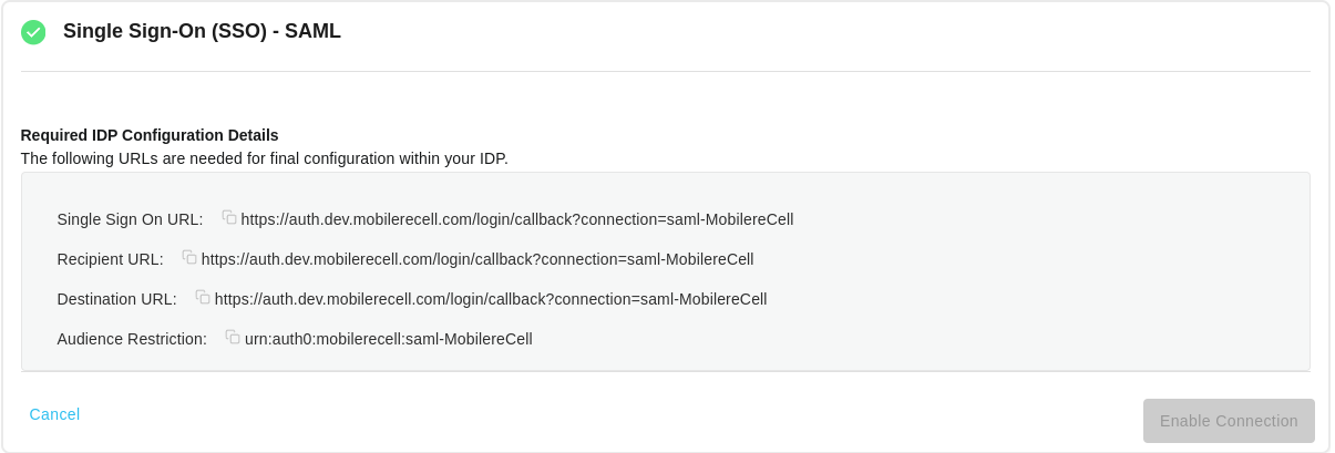 Details will be presented to you that are required to complete the setup in your IdP