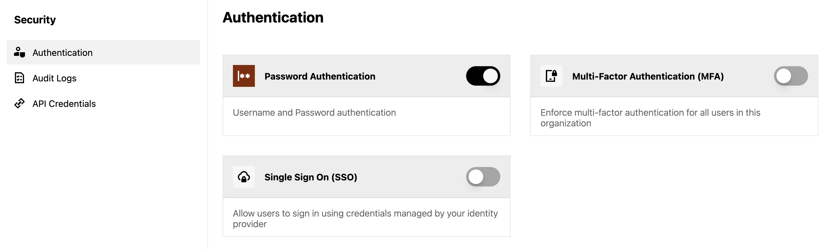 Note: It is assumed if you are using SSO, MFA is enforced from the IdP